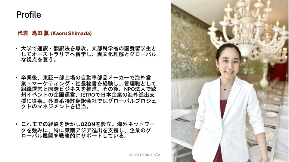 アメリカ、ヨーロッパ、アジア(特に東南アジア)でのOZON独自ネットワークで国境、大陸を超えたグローバルビジネス展開を可能とします。
